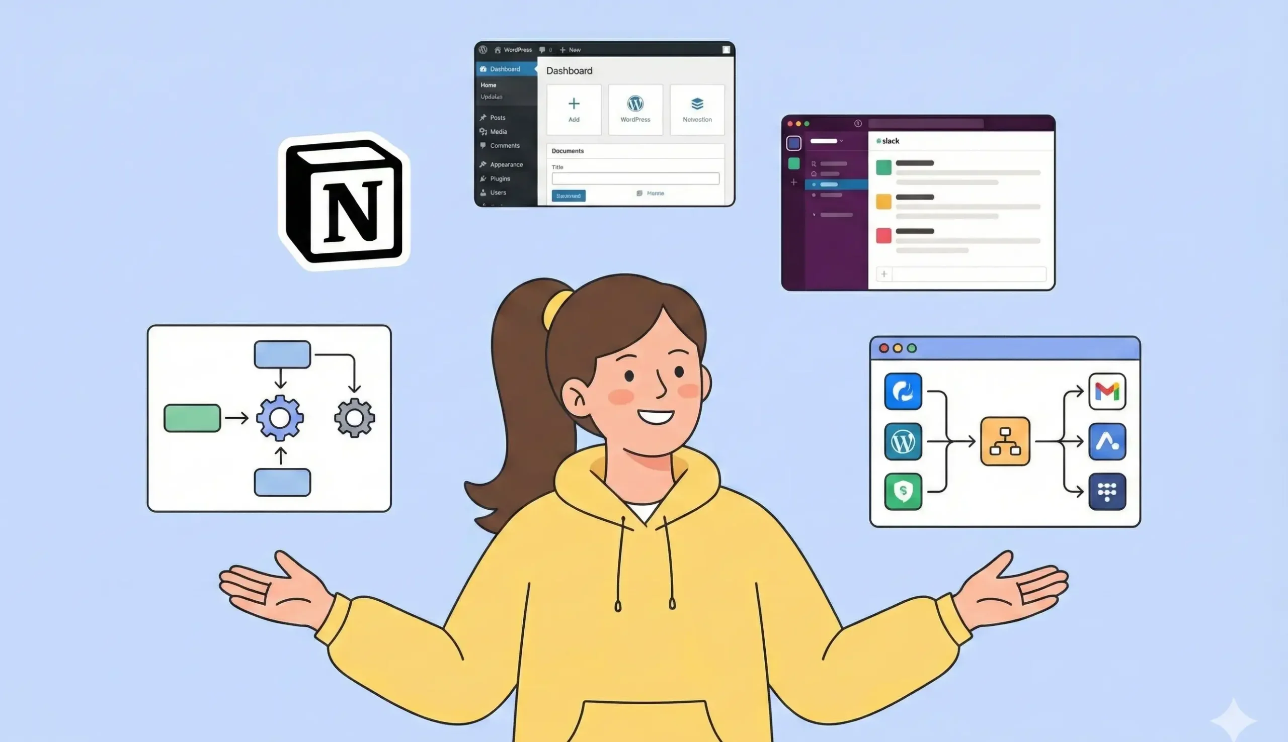 Domino el entorno digital (Notion, WordPress, Active Campaign...). Automatizo tus tareas, actualizo tu web y creo procesos depurados para que tu negocio vaya como la seda.